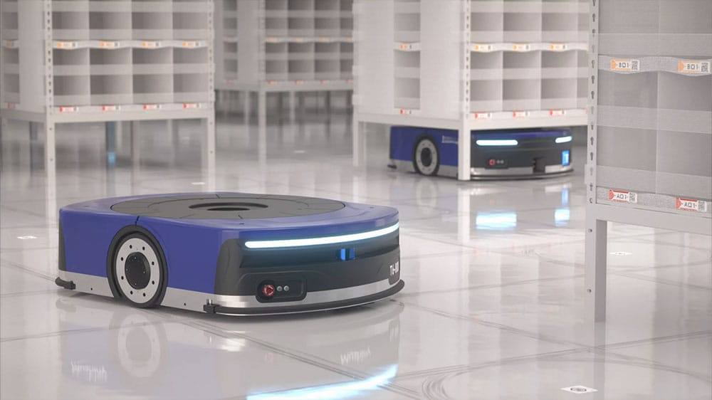 Guided vehicles that follow fixed routes for steady throughput and repetitive tasks.