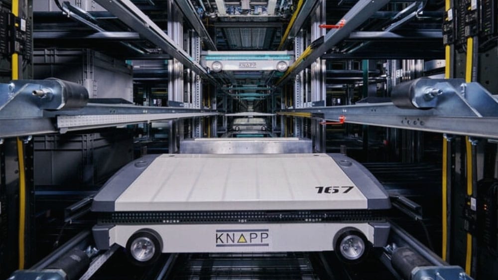 Automate pallet or case handling with robotic cranes or shuttles