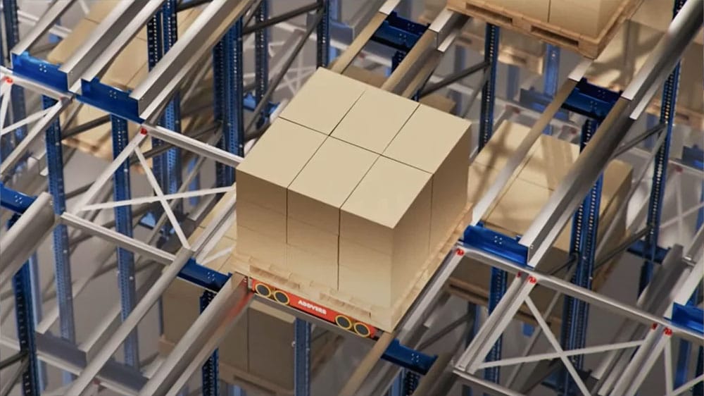 Move pallets or tote bins with high-speed shuttles within your racking channels.